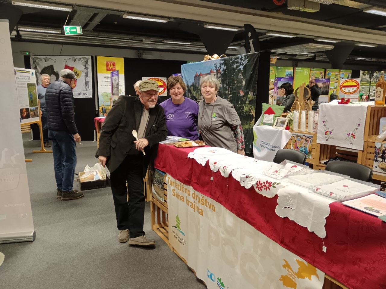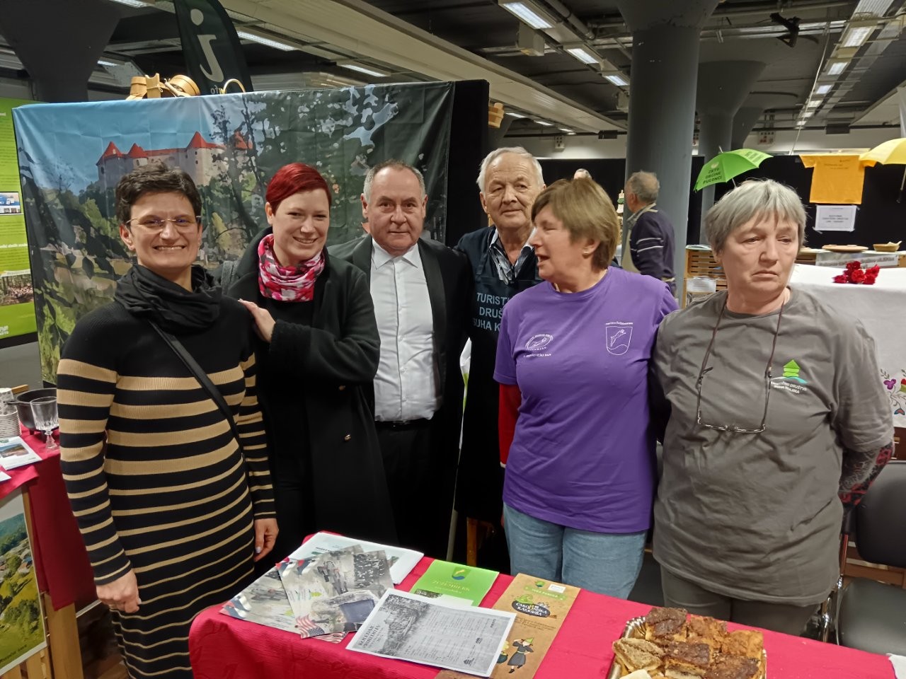 V steberni dvorani smo na stojnici obiskovalcem približali našo Suho krajino, njene naravne znamenitosti, kulinariko in kulturne dogodke, ki potekajo v občini Žužemberk. Prav na tanko smo rezali domačo suho salamo in tlačenko iz domače kamre. Ponujali smo cviček in druge pijače iz domačih kleti. Presenečeni smo bili, kako so obiskovalci spraševali po šmarnici in je niso mogli prehvaliti. Še nekaj let nazaj so nad to ponosno samorodnico kremžili obraze in vihali nosove.
