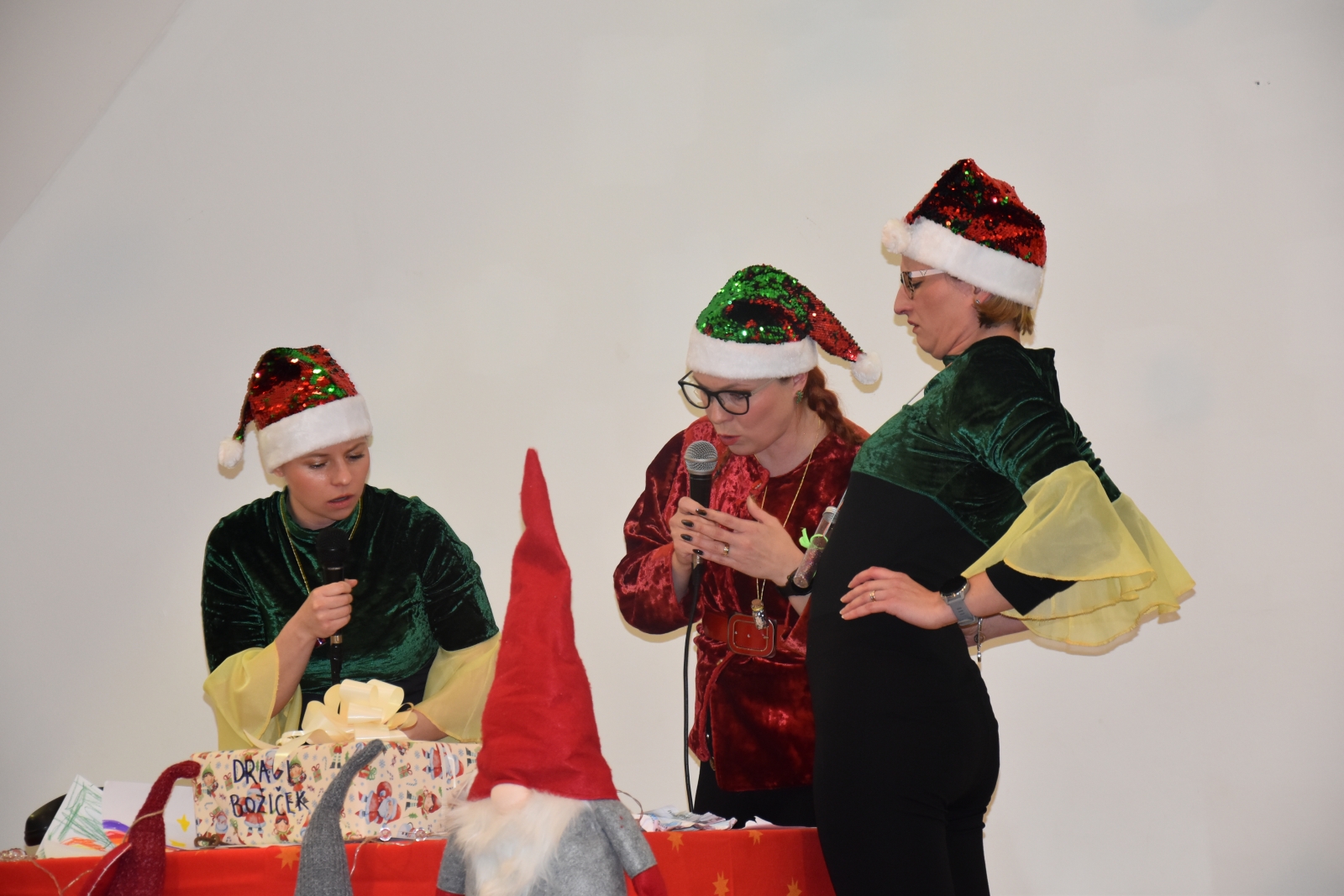 Povabljene gostje večera so bile članice KUD Mirna Peč. Zaigrale so kratko igro o škratovi delavnici in zbrane spomnile, da čar praznikov niso le darila, temveč tudi dobrota do sočloveka in čas, ki si ga vzamemo drug za drugega.