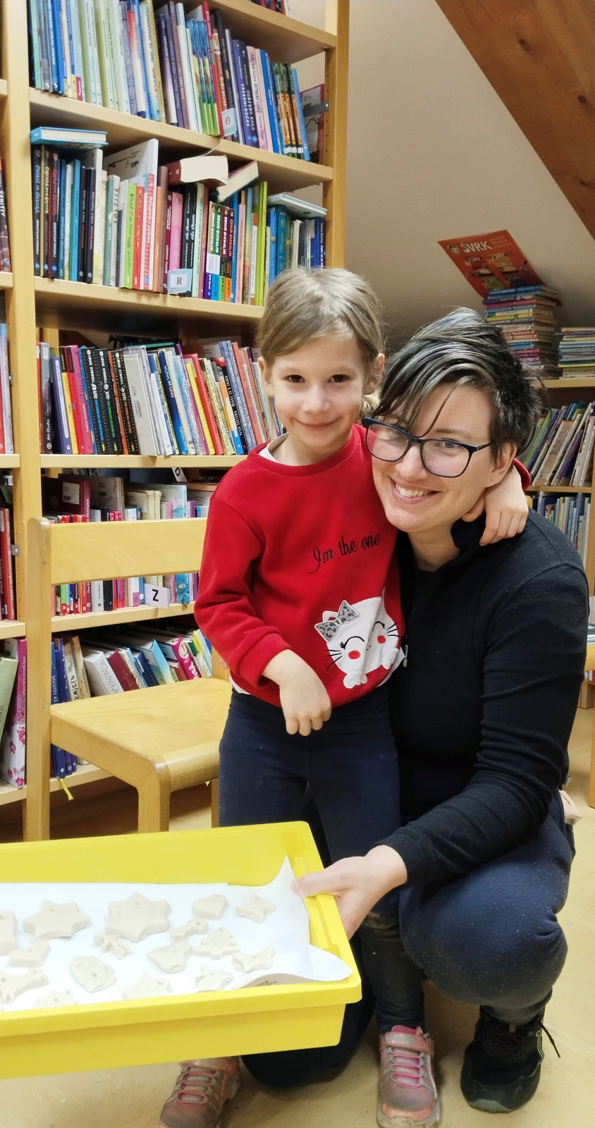 Po pravljici je sledila ustvarjalna delavnica, kjer so mali ustvarjalci pokazali izjemno domišljijo in spretnost. Iz slanega testa so nastajali najrazličnejši okraski – od nežnih srčkov in sijočih zvezdic do ljubkih smrečic in snežink. Ko se bodo doma posušili, jih bodo otroci še pobarvali in okrasili, zato bo vsak okrasek postal povsem unikaten in čudovit dodatek njihovim prazničnim smrečicam ali darilom za najbližje.