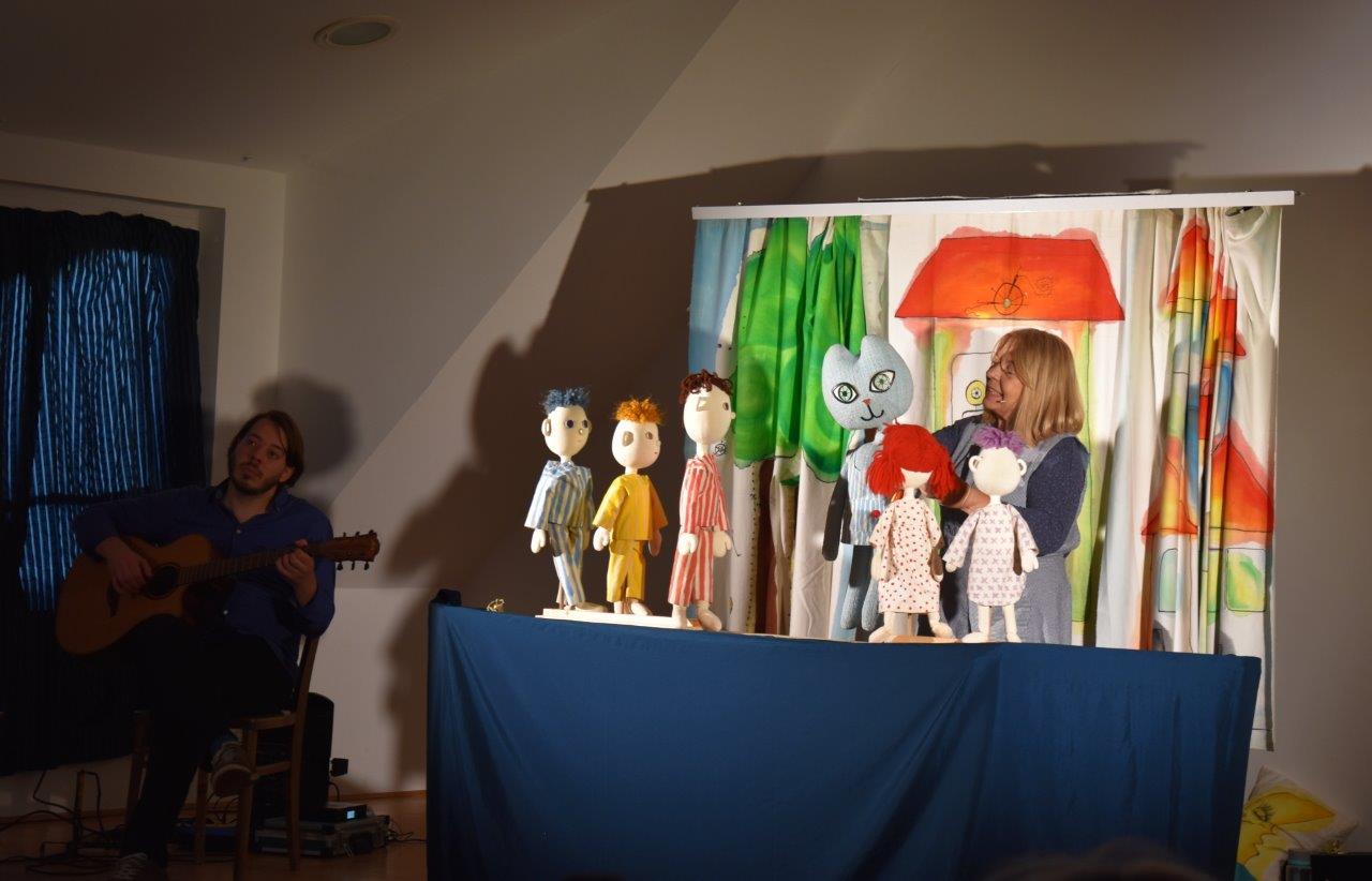 Lutkovna pravljica je bila uprizorjena z domiselnimi lutkami, ob živo izvajani glasbi in otroških pesmicah, kar je ustvarilo toplo, igrivo in sproščeno vzdušje.