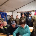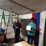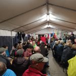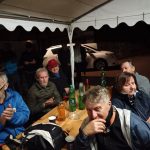 Slabo vreme je odvrnilo številne pohodnike. Bilo nas je le za poln šotor. Tu se je prejšna leta dogajal velik boj za prostor, kjer bi mogli v miru pojesti klobaso in spiti pijačo. Letos je bilo prostora dovolj. Tudi proslava je potekala v tem šotoru, vodila pa jo je Terezija Potočar, ki nam je povedala tudi nekaj zgodovine o Novomeški četi. Uvodni govor je imel Jože Papež, župan domače občine, slavnostni govornik je bil letos Marjan Križman, predsednik zveze združenja borcev za vrednote NOB. Sledile so recitacije partizanskih pesmi, na harmoniko pa je zaigral Mitja Bukovec. Še bi ostali, a bilo je mrzlo, mokro in pozno. Morali smo si priboriti še prevoz do doma, saj za pohod, blizu štirinajst kilometrov poti nazaj, ni bilo računati. Vse se je dobro končalo. Ni nam bilo žal prezeblih prstov na rokah, mokrih oblačil, strašnih nočnih pošasti med potjo, niti blata na poti.