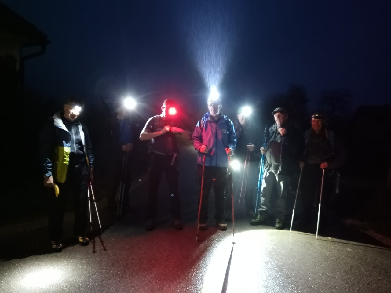 V spomin na ta dogodek se vsako leto iz Prečne, kjer so se takratni borci zbrali, odpravijo pohodniki na nočni pohod na proslavo do Brezove rebri in naprej na Frato. Kasneje so se novodobni novomeški četi priključili še pohodniki iz Dolenjskih Toplic, Straže, Globodola in Žužemberka. Letos je bilo vreme mokro in hladno, a se nas je na Grajskem trgu v Žužemberku vseeno zbralo osem izkušenih pohodnikov. Z nami je bila tudi Even, Stanetova štirinožna ljubljenka in naša dobra znanka z drugih pohodov. Odšli smo ob 15h skozi Klek, mimo Trebče vasi, skozi Tale do Boršta in po spodnji poti do Velikega Lipovca. Med potjo smo bili deležni okrepčil domače kapljice iz prijaznih sodov domačinov ob poti. Pred Velikim Lipovcem smo pri kapelici zavili z glavne poti v gozd in dobro znanega asfalta je počasi zmanjkalo. Dohitela nas je noč, prižgali smo čelke in po blatu, v soju čelne brlivke čmokljali skozi črno hosto; pa še dež nas je začel močiti. Andrej, vodja pohoda nas je varno pripeljal do Brezove rebri, kjer pa letos ni bilo proslave. Tudi na Frati pri spomeniku padlim borcem ne. Očitno je dež pripomogel k temu, da je akcija: »Nič nas ne sme presenetiti!« letos odpadla. Nič zato. V velikem šotoru na Frati je bilo suho in prijetno. Tu smo se preoblekli v suha oblačila iz naših nahrbtnikov. Župan občine Žužemberk, Jože Papež, nas je počastil s šilcem tistega, ki tudi hladno zapeče in pogreje dušo, s toplim čajem pa smo si pogreli telo in mrzle ude.