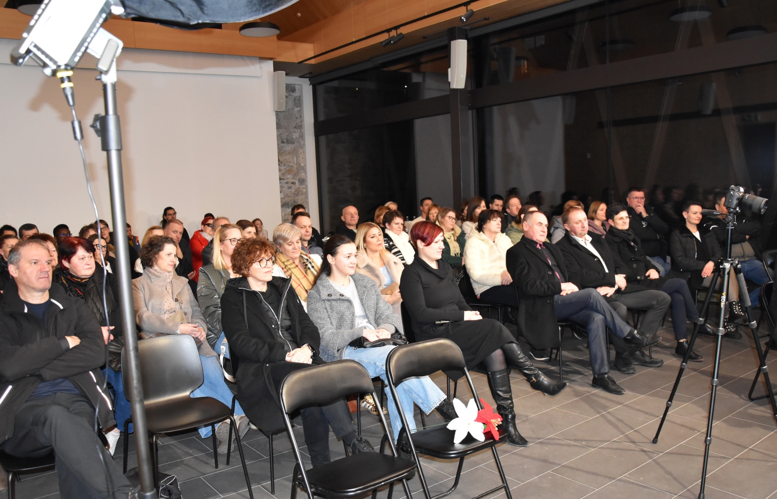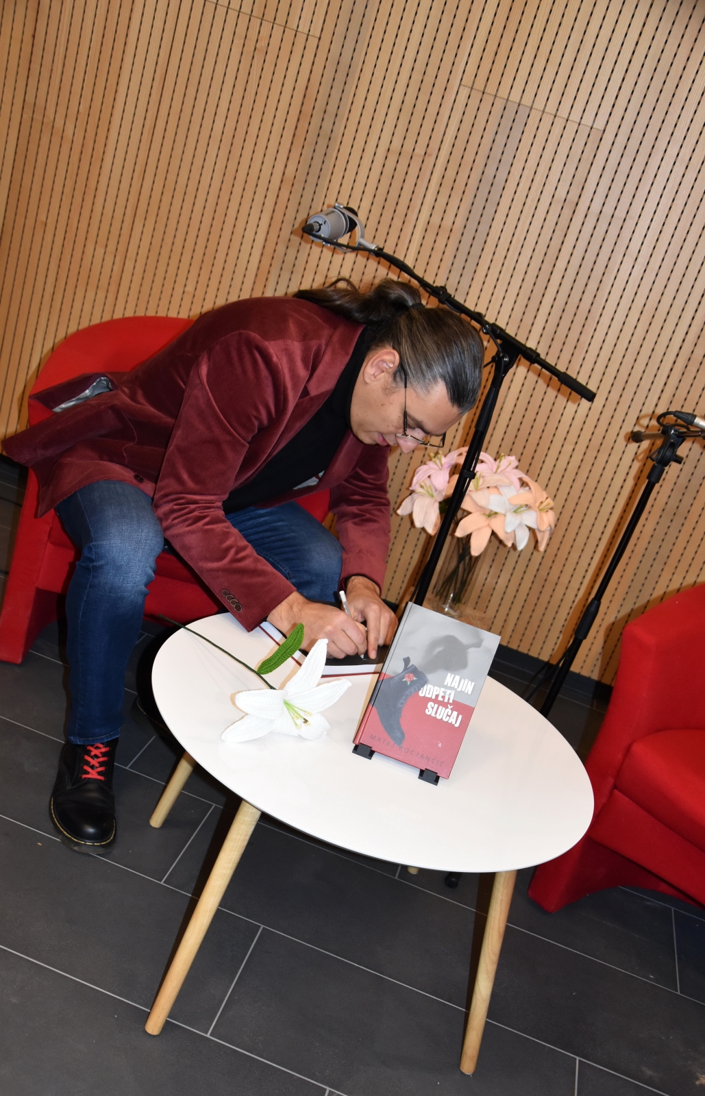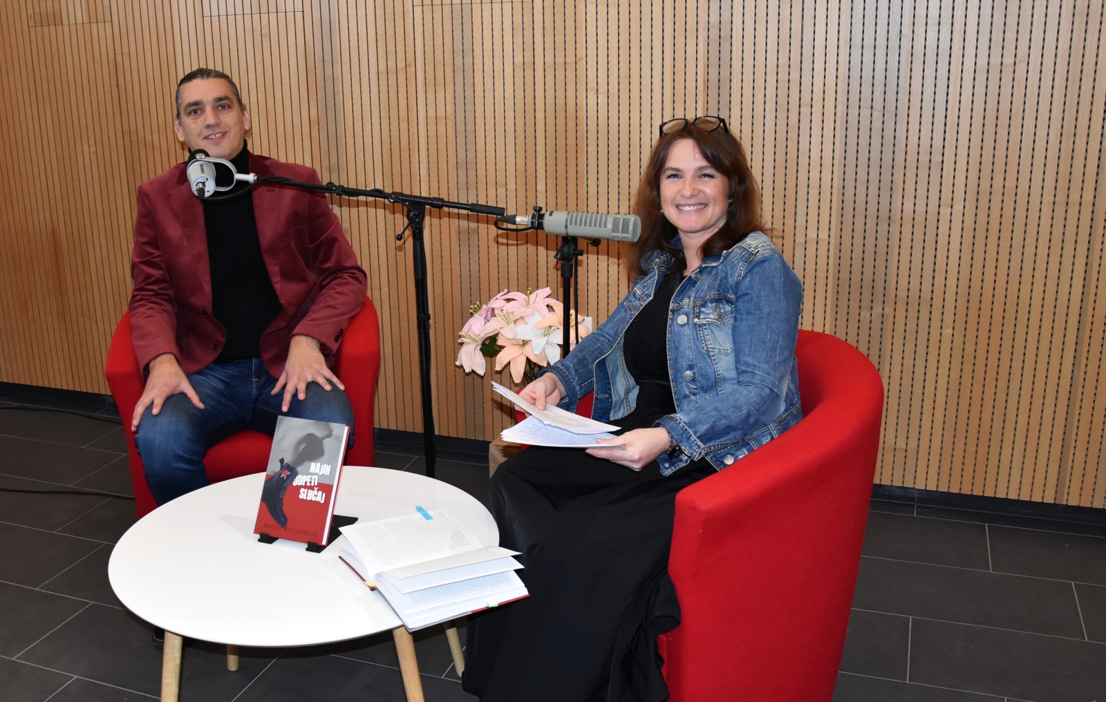 V petek, 23. januarja 2026, smo na Dvoru doživeli poseben kulturni dogodek – prvo javno snemanje podcasta v Suhi krajini, posvečenega prav romanu Najin odpeti slučaj. Večer v čudoviti dvorani Trajberk je minil v sproščenem, čustvenem in predvsem prijetnem vzdušju. Matej Kocjančič je z nalezljivim žarom pripovedoval o nastajanju knjige, izvrstna vprašanja Brigite Lavrič pa so pogovor še dodatno poglobila in obogatila. Oba sta snemanje podcasta odpeljala suvereno in z veliko mero občutka za poslušalce. Z zanimanjem že pričakujemo, da bo podcast kmalu na ogled.