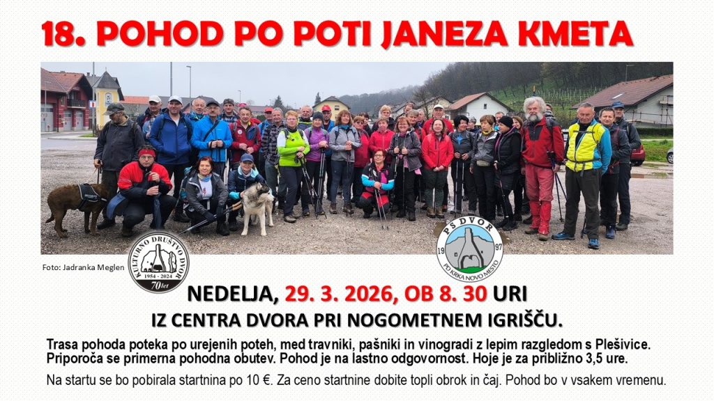 Vabljeni na pohod po poti Janeza Kmeta 2026